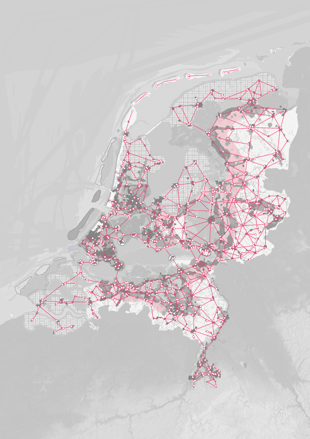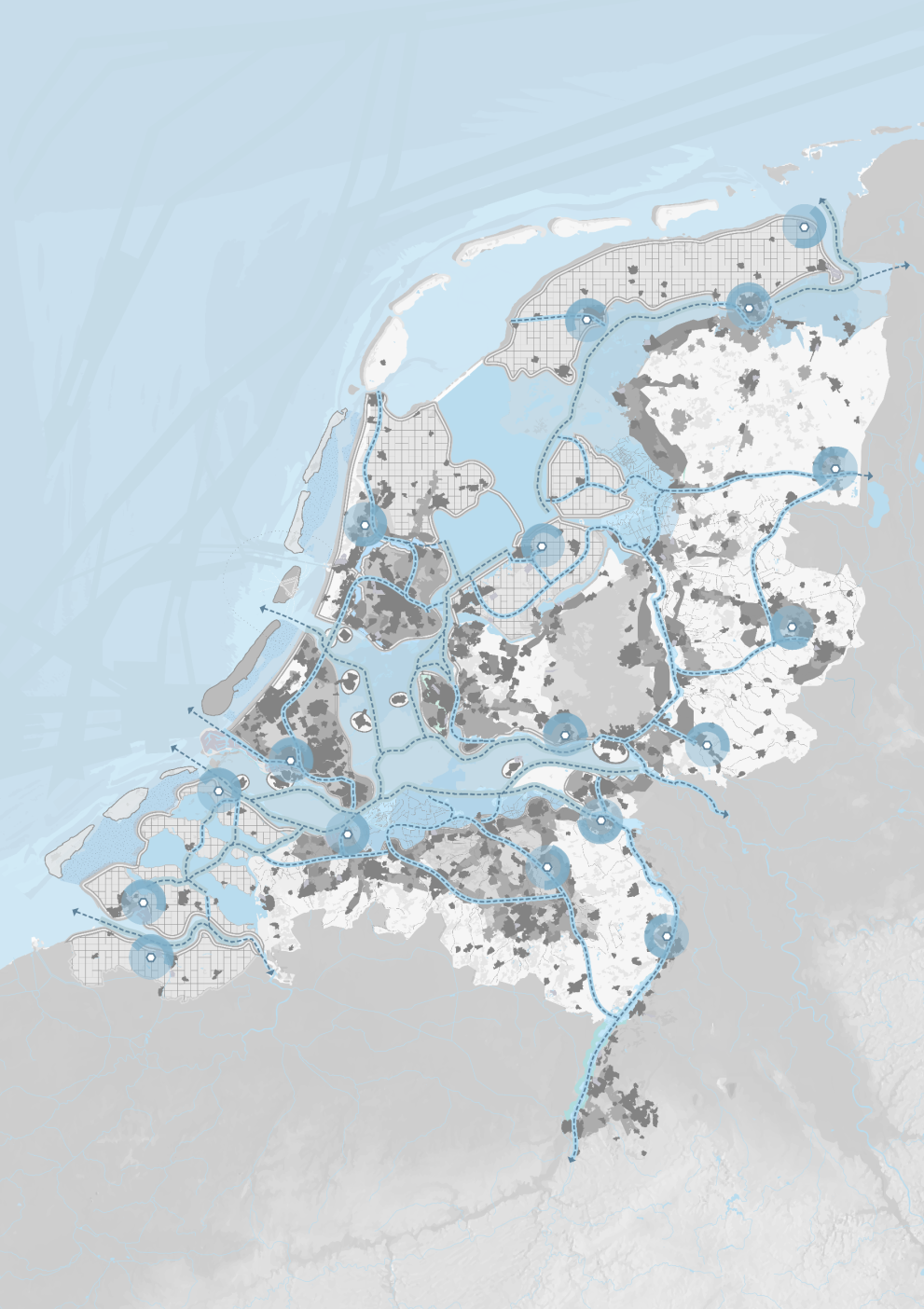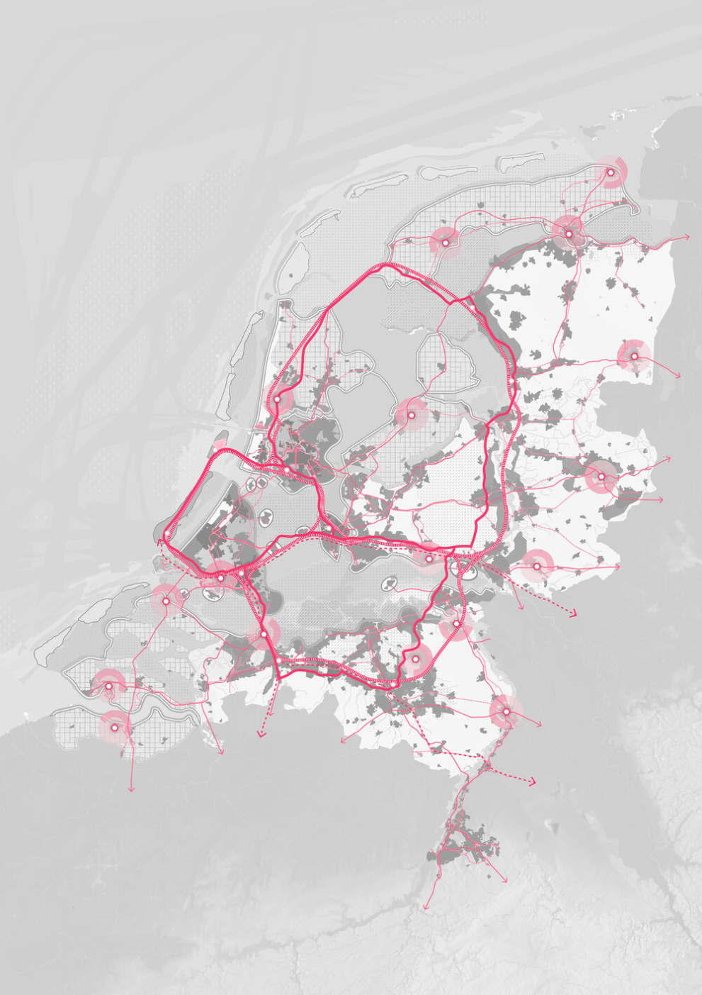 Nederland krijgt drie circuits met snel hoogwaardig openbaar vervoer waar ook de nieuwe nationale luchthaven (als ruimtelijke entiteit) in de Noordzee op is aangesloten. In Eindhoven en Arnhem kun je direct inchecken voor je vlucht vanaf het nieuwe Schiphol. De loops zijn in Amsterdam, Rotterdam en Utrecht verknoopt zodat onderliggende vervoersystemen goed aansluiten.